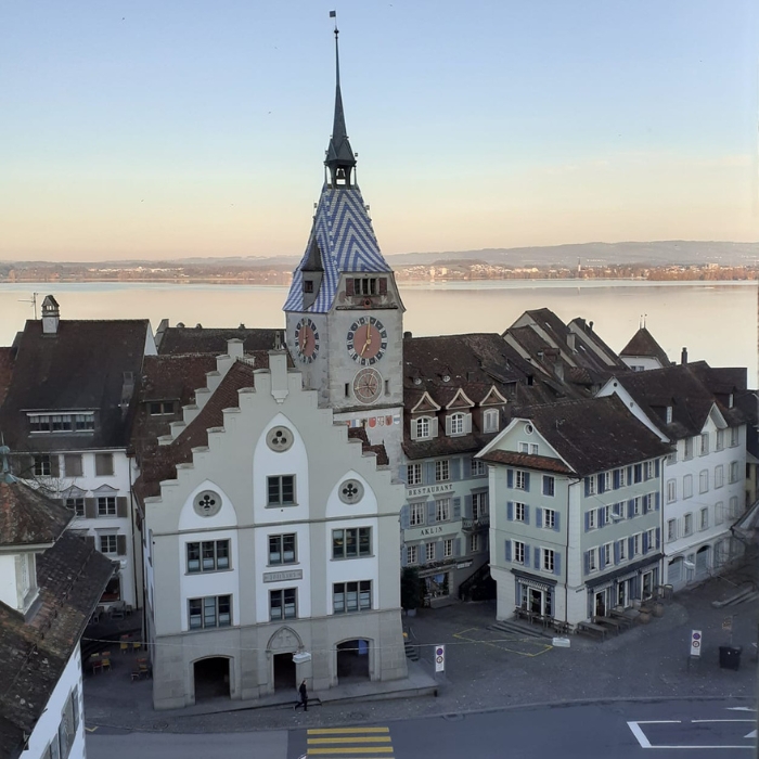 I felt like I’d wandered into a fairytale when I first arrived in Zug. With its cobbled streets, beautiful views across Lake Zug and striking historic buildings, including the 13th century Zytturm Clock Tower, you might very well wonder if you’d travelled back in time, or onto a film set. As I spent my evening walking around the town, I soon realised that this was, of course, a real place in 2023, where people work and live, and was soon appreciating how sympathetically the town had combined the needs and amenities of modern living with its historic heritage.